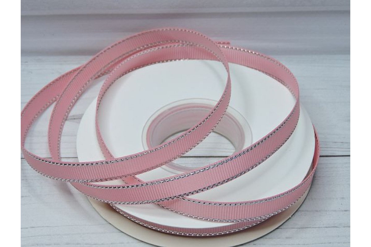 Лента репсовая 10 мм с люрексом серебро, цв. розовый №253 - 1 м.