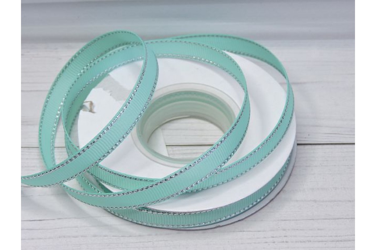 10145, Лента репсовая 10 мм с люрексом серебро, цв. светло-аквамариновый - 1 м., , 0.59BYN, 126-315, Китай, Репсовые ленты с люрексом