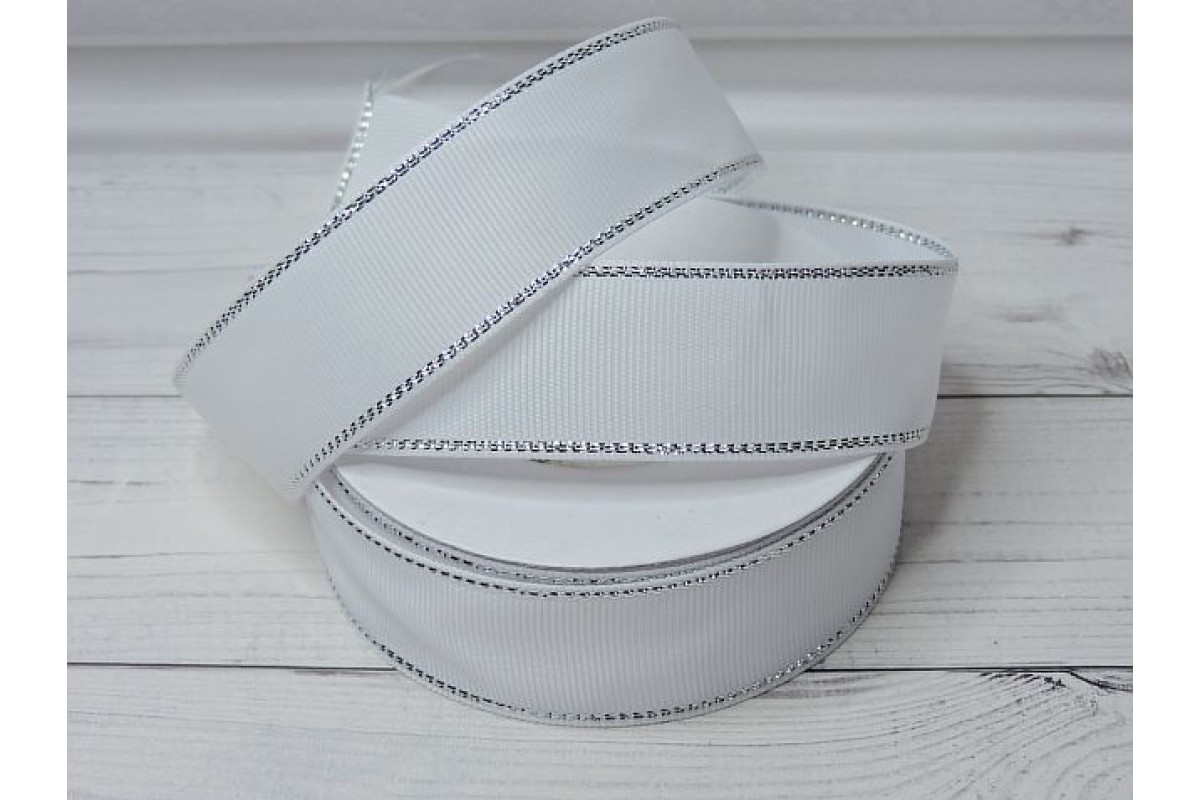 Лента репсовая 25 мм с люрексом серебро, цв. белый - 1 м.