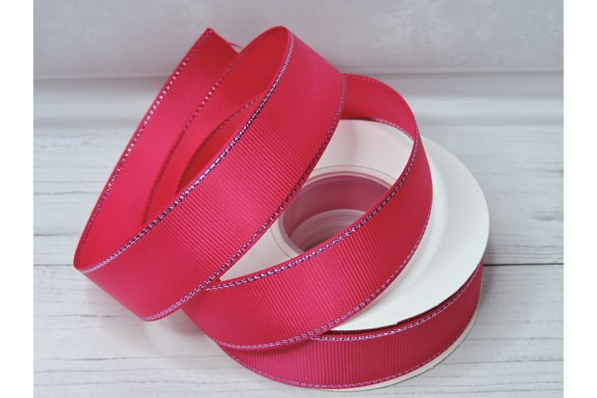 Лента репсовая 25 мм с люрексом серебро, цв. фукси - 1 м.