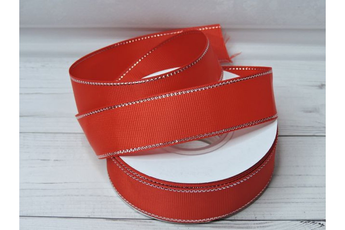 Лента репсовая 25 мм с люрексом серебро, цв. красный - 1 м.