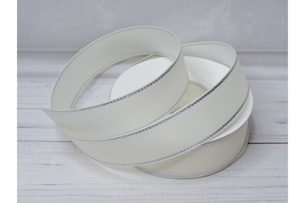 Лента репсовая 25 мм с люрексом серебро, цв. кремовый - 1 м.