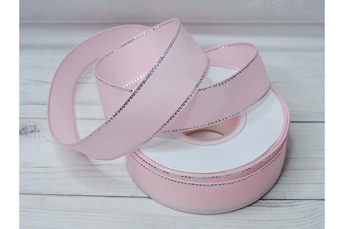 Лента репсовая 25 мм с люрексом серебро, цв. розовый №04 - 1 м.