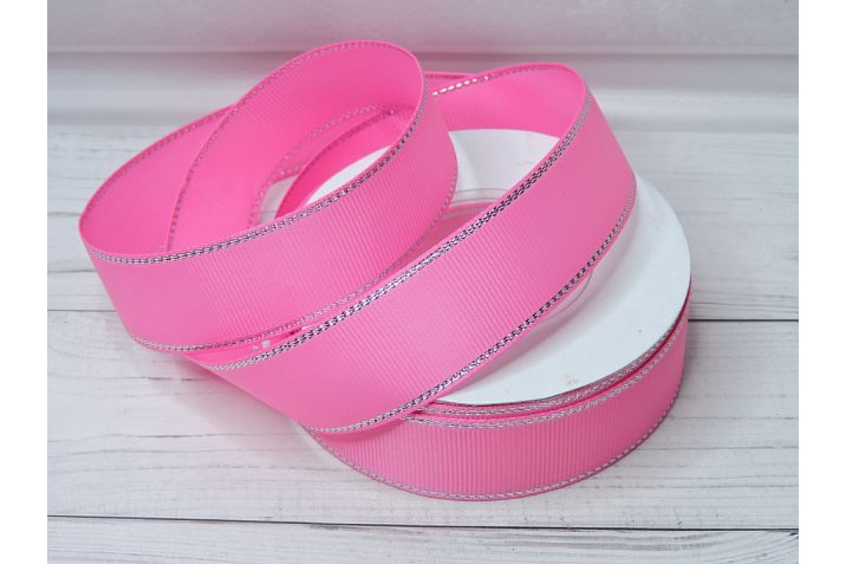 Лента репсовая 25 мм с люрексом серебро, цв. розовый №05 - 1 м., 126-77, Китай, Репсовые ленты с люрексом