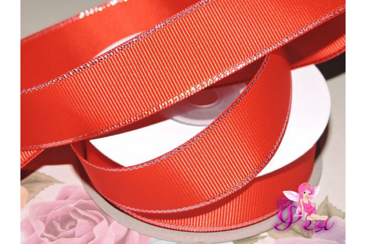 Репсовая лента 25 мм с люрексом серебро Premium, цв. красный - 1м