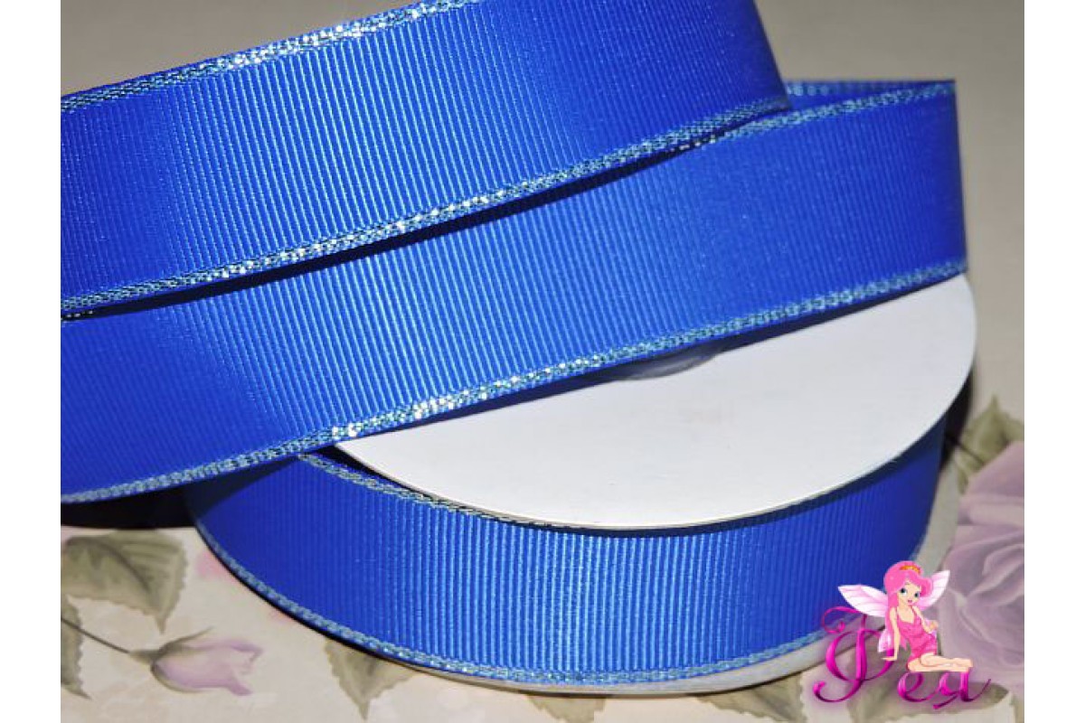 Репсовая лента 25 мм с люрексом серебро Premium, цв. синий - 1м