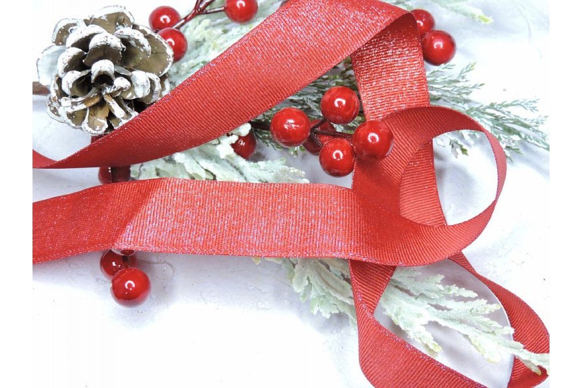 Репсовая лента 25 мм с люрексом, цв. бордовый - 1 м.
