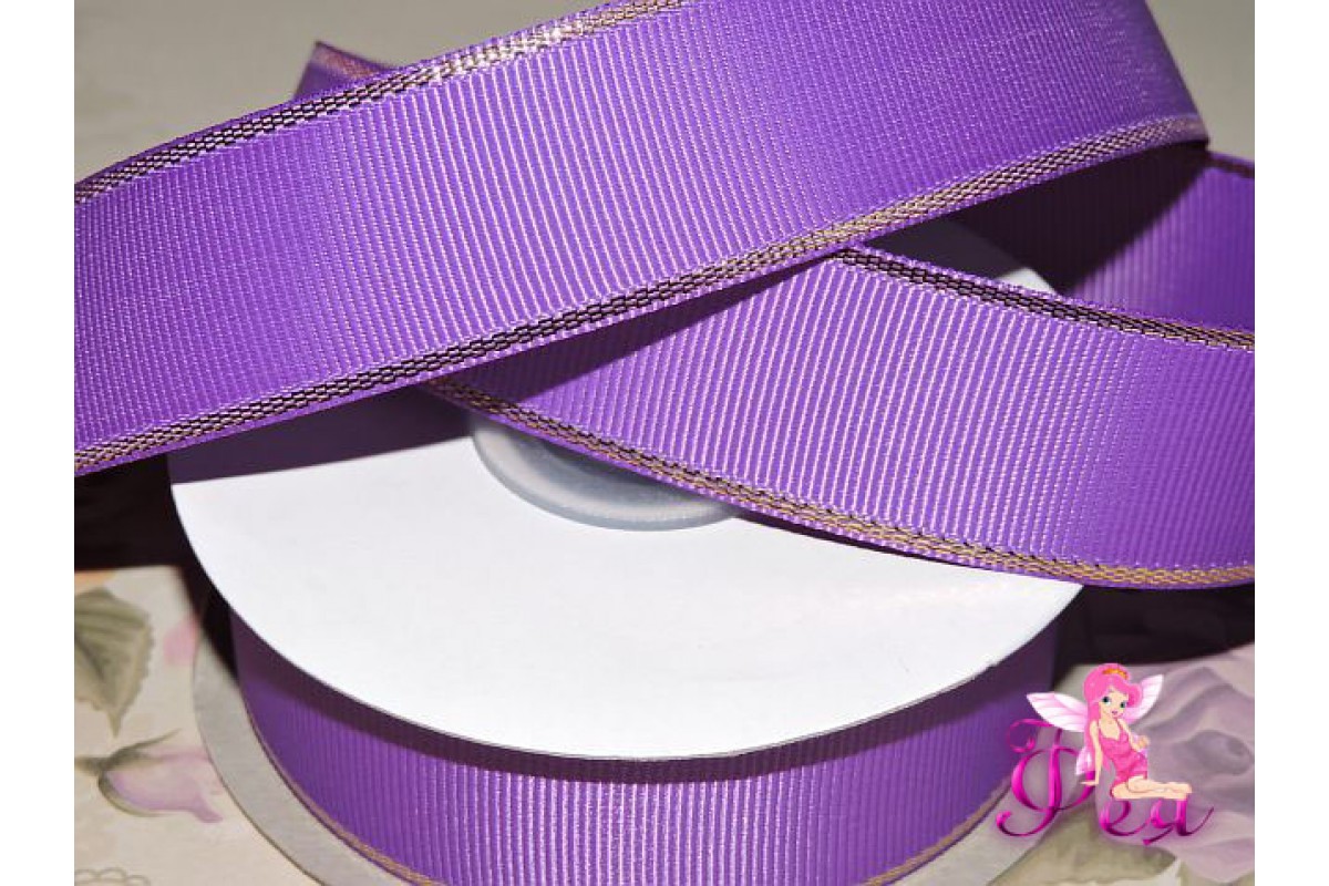 Репсовая лента 25 мм с люрексом золото Premium, цв. фиолетовый - 1м, Д 110/70, Китай, Репсовые ленты с люрексом