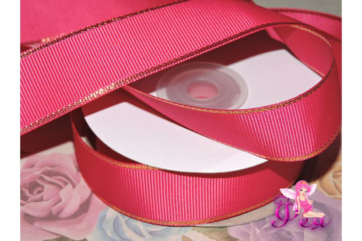 Репсовая лента 25 мм с люрексом золото Premium, цв. фукси - 1м, Д 90/150, Китай, Репсовые ленты с люрексом