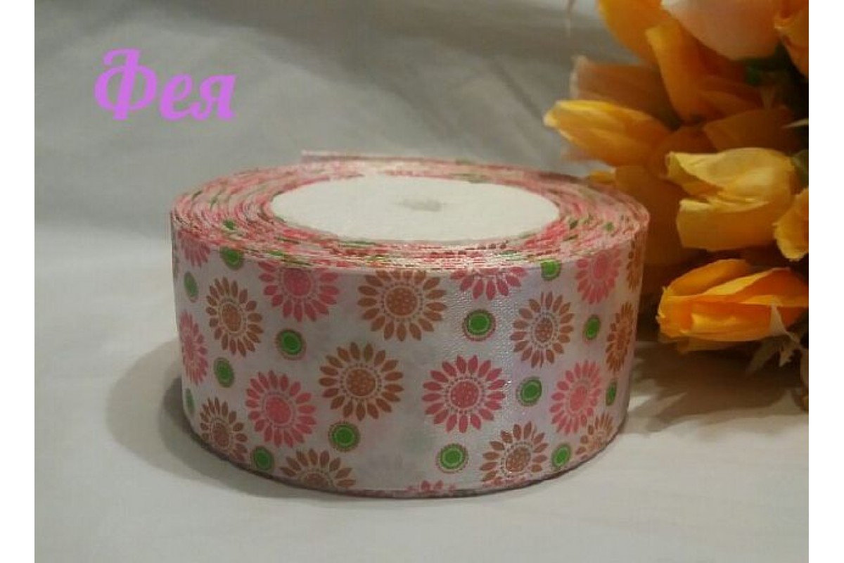 Атласная лента с рисунком 40мм "Большие цветы", А 2/7/10, Китай, 40мм