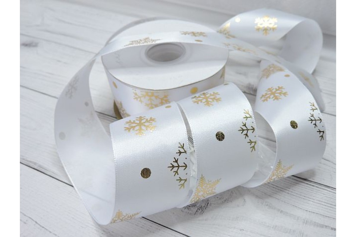 Лента атласная 40 мм с рисунком "Снежинки" - 1 м.