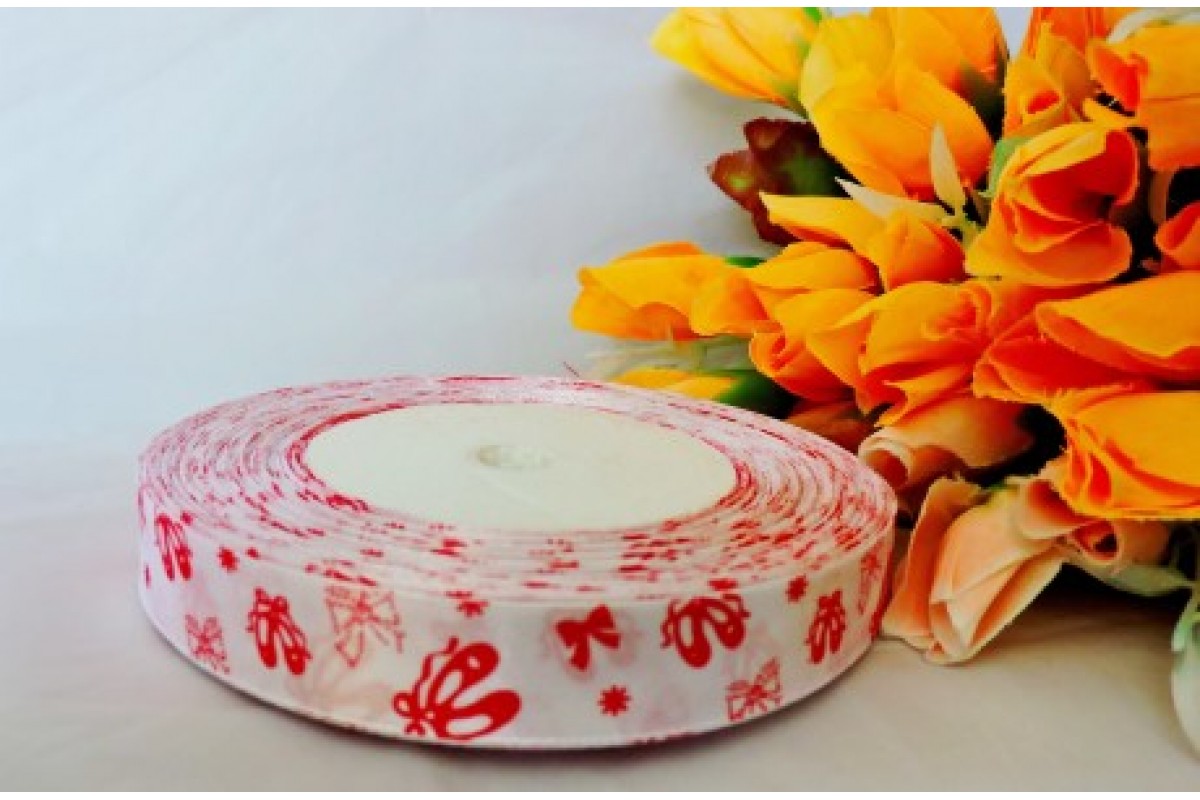 Лента декор. атласная с рис."балетки" ш.15мм белый, С2/1, Россия, 6-12 мм