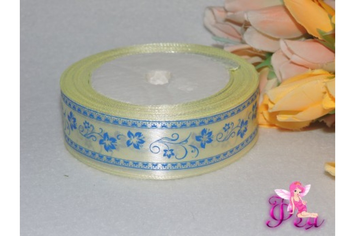 Атласная лента 25 мм с рис. "Цветочный узор", цв. кремовый