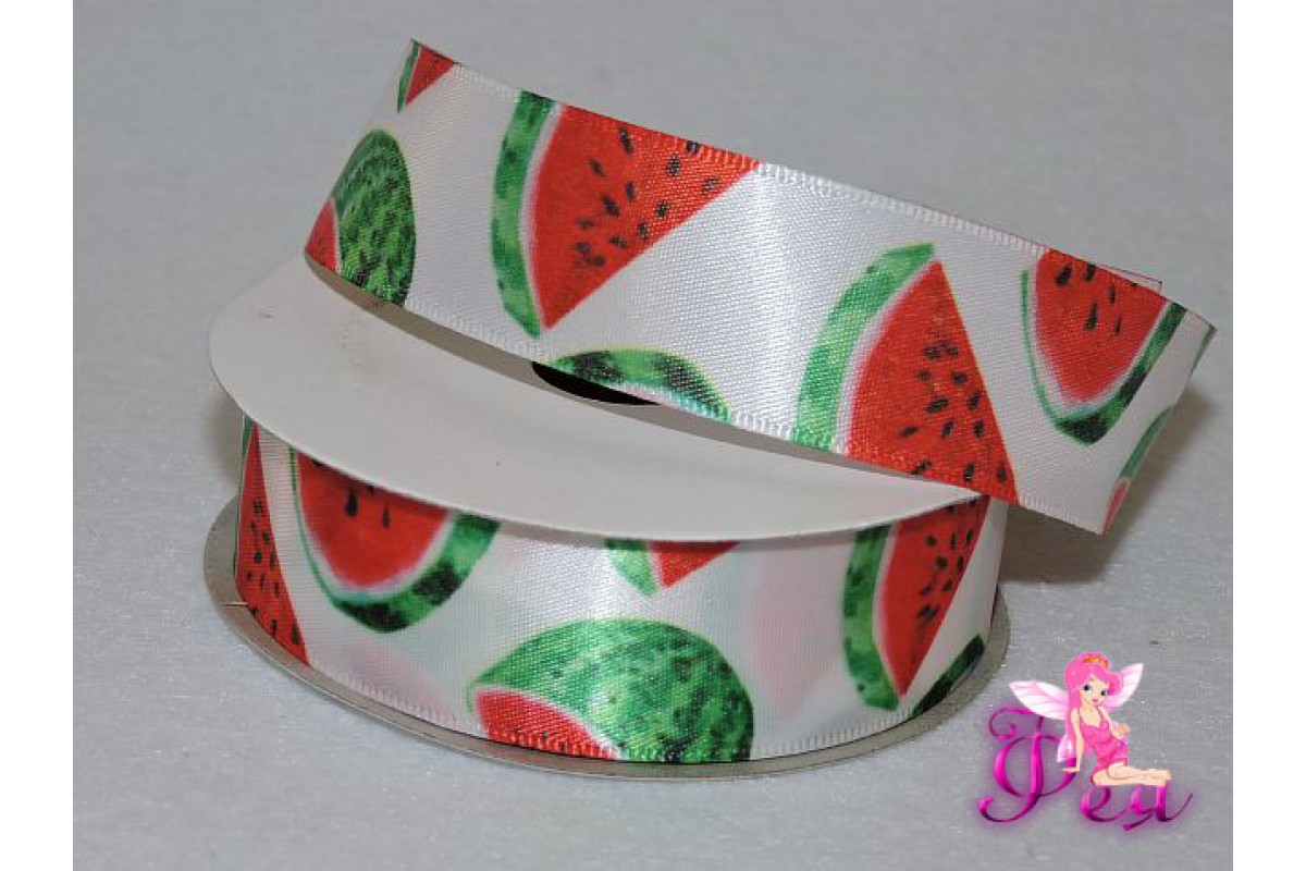 Атласная лента 25 мм с рисунком, "Арбуз"