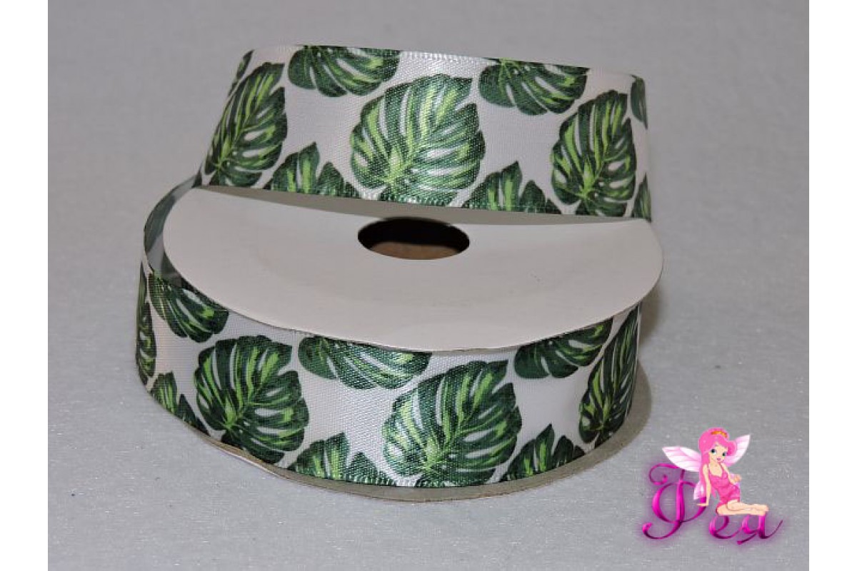 Атласная лента 25 мм с рисунком, "Лист пальмы"