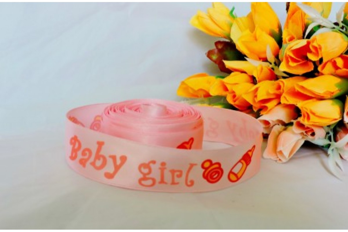 Атласная лента "Baby girl" 25мм, цв. розовый, 11, Китай, 25 мм