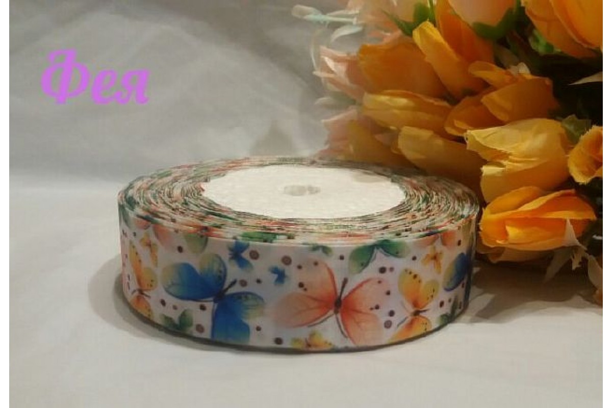 Купить атласную ленту белого цвета с рисунком "Разноцветные бабочки" Вы можете в нашем интернет-магазине по доступной цене и с удобной доставкой.
