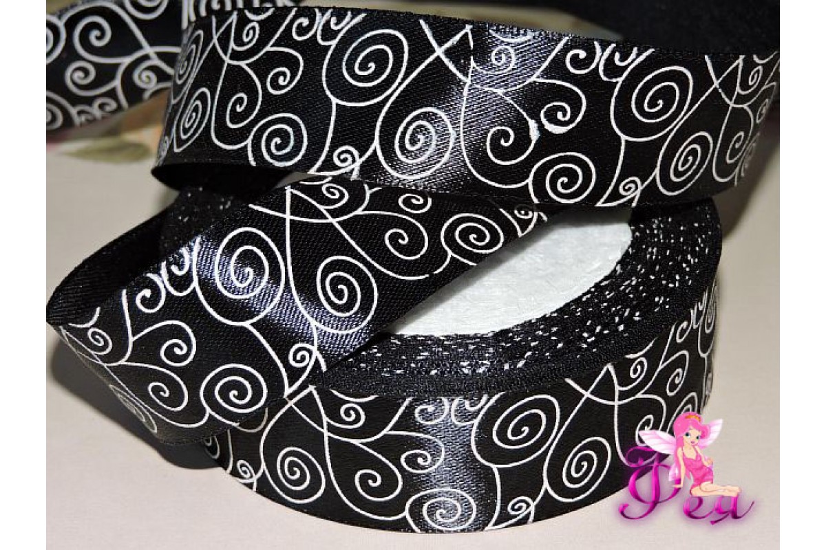 Лента атласная 25 мм, с рисунком "Узор", цв. черный- 1м
