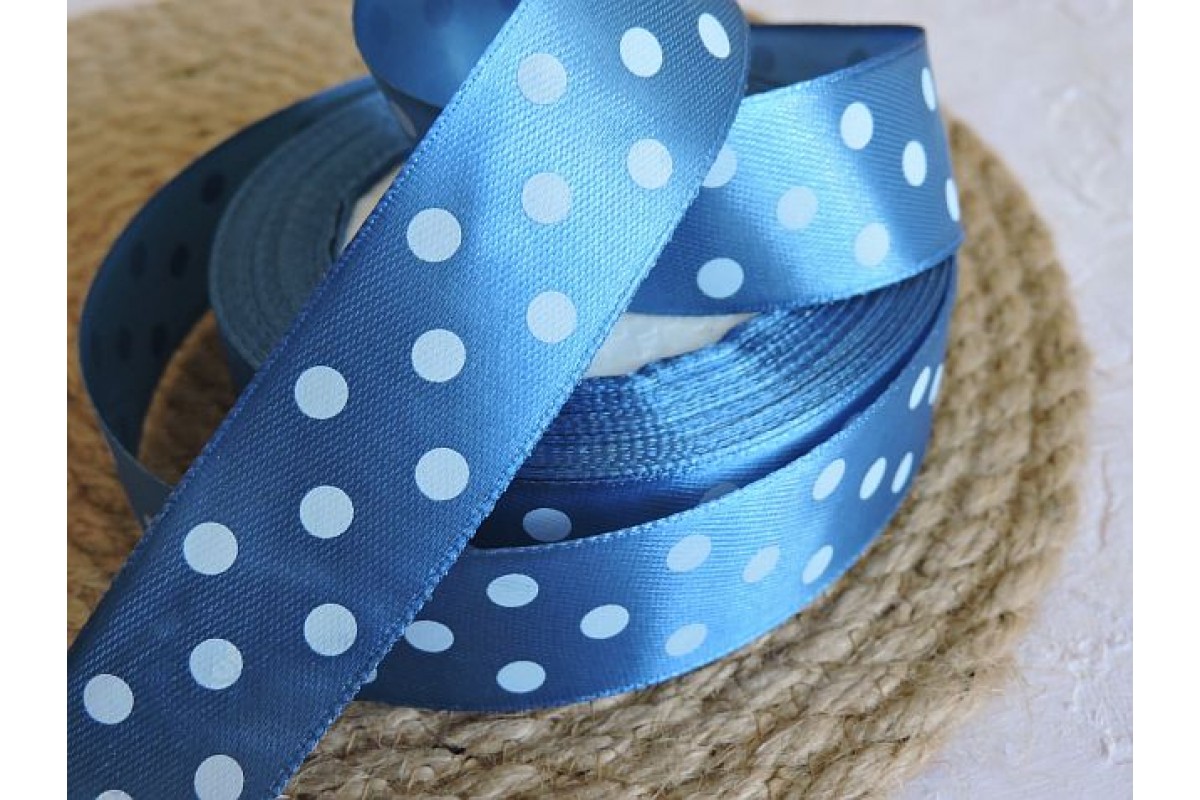 Атласная лента 25 мм "Крупный горох", цв. светло-синий - 1 м