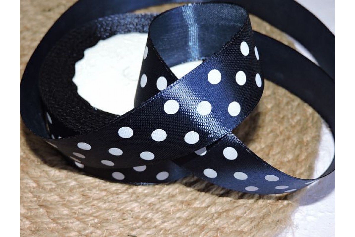 Атласная лента 25 мм "Крупный горох", цв. темно-синий - 1 м