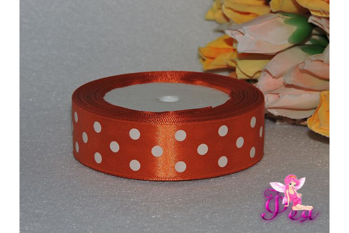 Купить атласную ленту оранжевого цвета с рисунком "Крупный белый горох" в розницу по низким ценам с доставкой во все города Белоруссии можно в нашем интернет-магазине.
