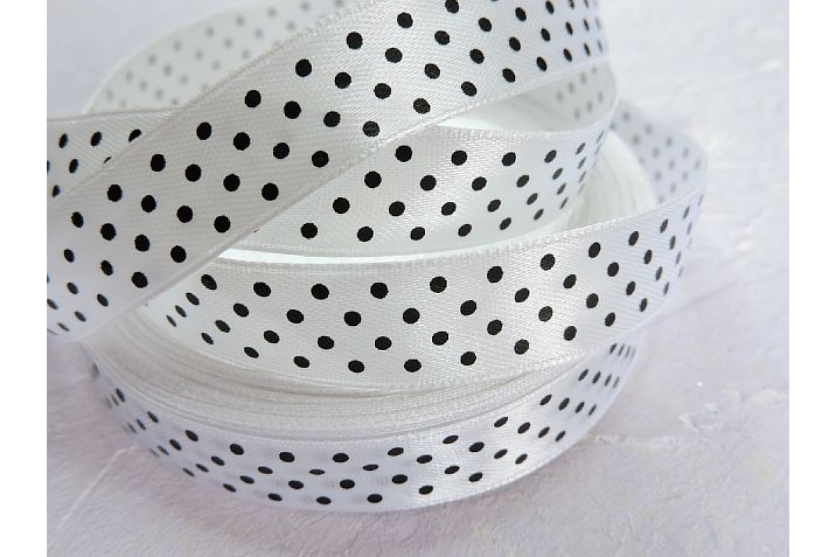 Лента атласная в горошек 1.5 см, цв. белый - 1 м.