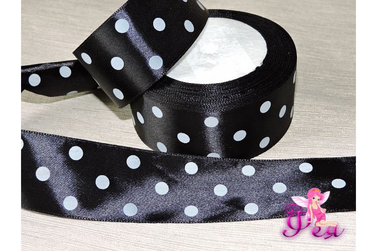Лента атласная 40 мм с рисунком "Горох" , цв. черный