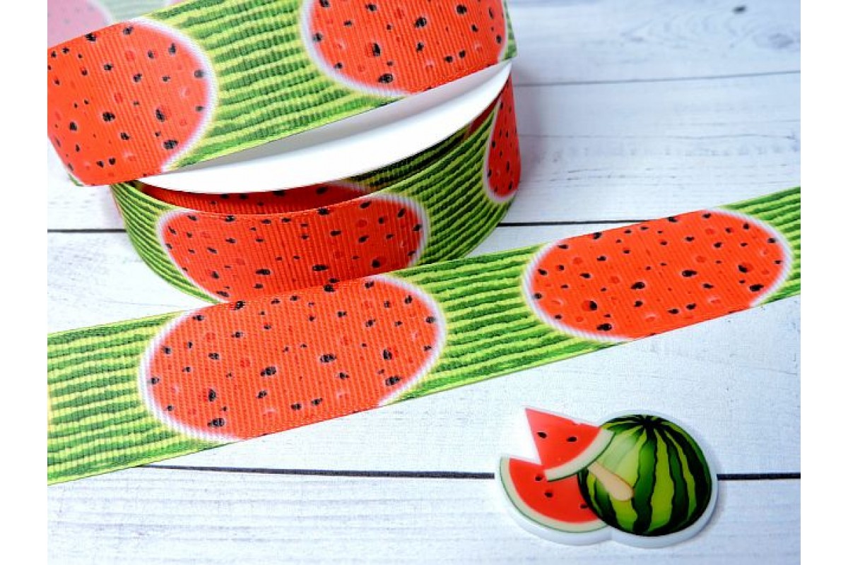 10761, Лента репсовая 25 мм с рисунком "Арбуз" (треугольный лепесток) - 1 м., , 1.30BYN, 126-725нов, Китай, 25 мм