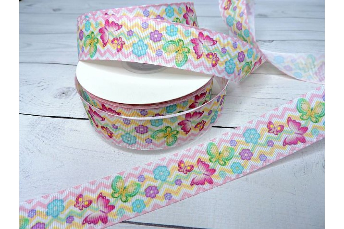 Лента репсовая 25 мм с рисунком "Бабочки №1" - 1 м.