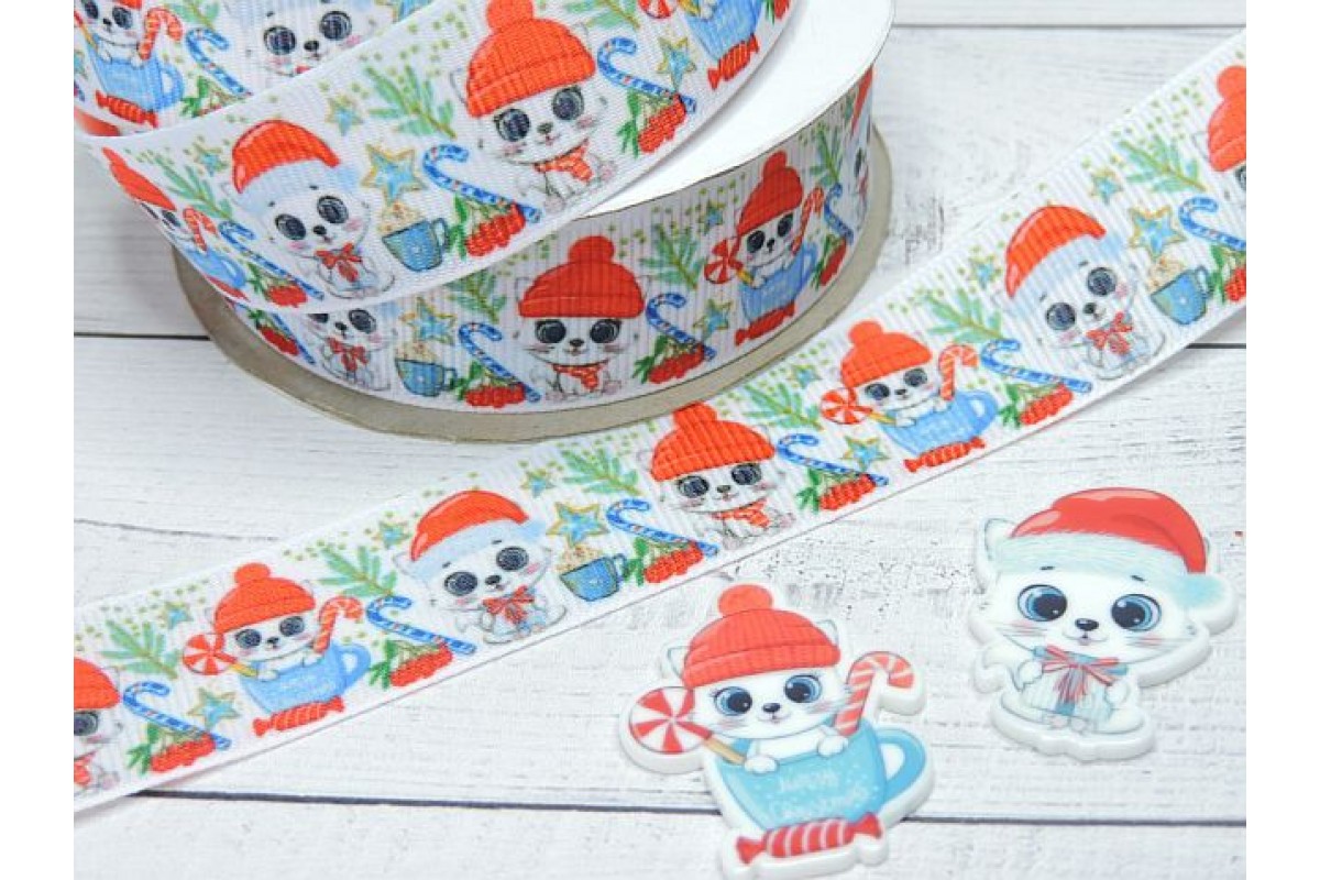 Лента репсовая 25 мм с рисунком"Котенок" - 1 м., 126-540 нов, Китай, 25 мм
