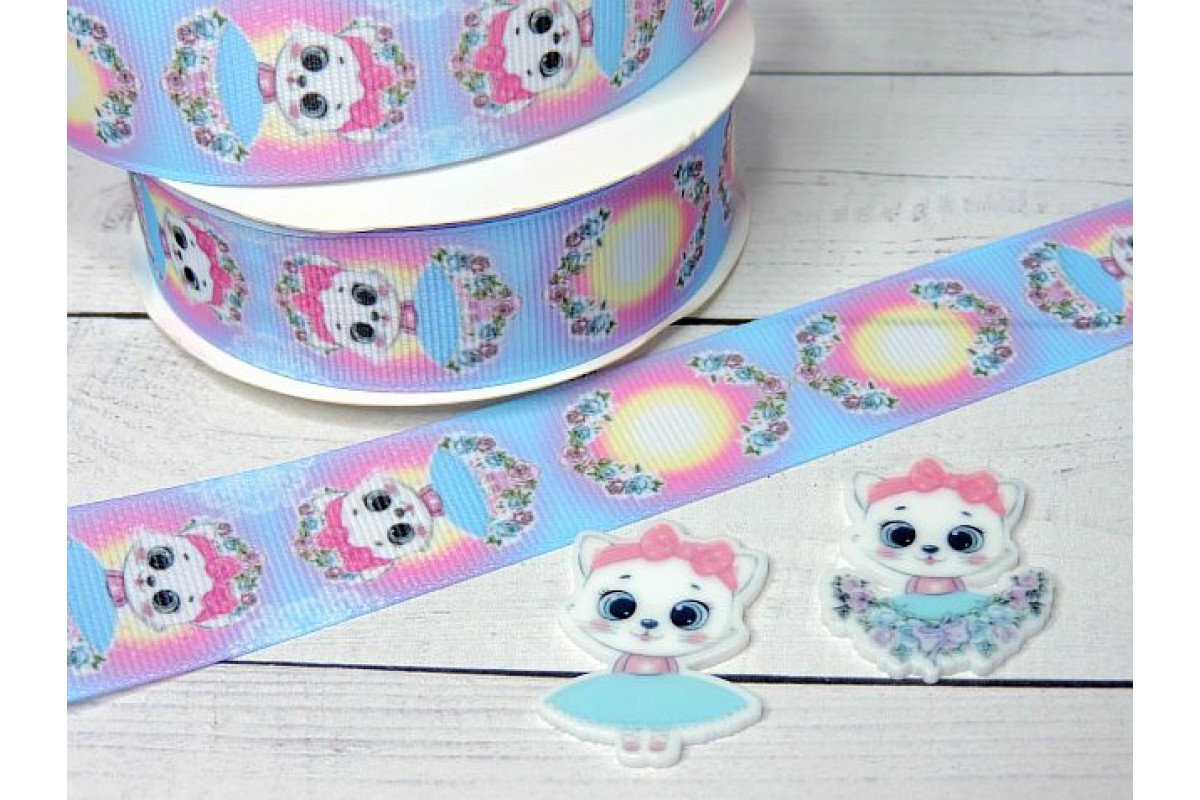 10769, Лента репсовая 25 мм с рисунком "Котенок" (треугольный лепесток) - 1 м., , 1.30BYN, 126-722нов, Китай, 25 мм