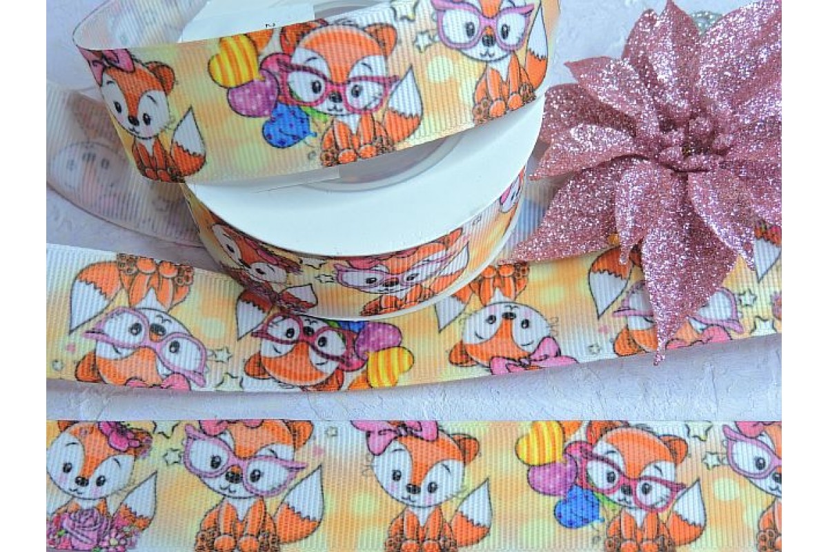 Лента репсовая 25 мм с рисунком "Лисичка" - 1 м., 126-198 н, Китай, 25 мм