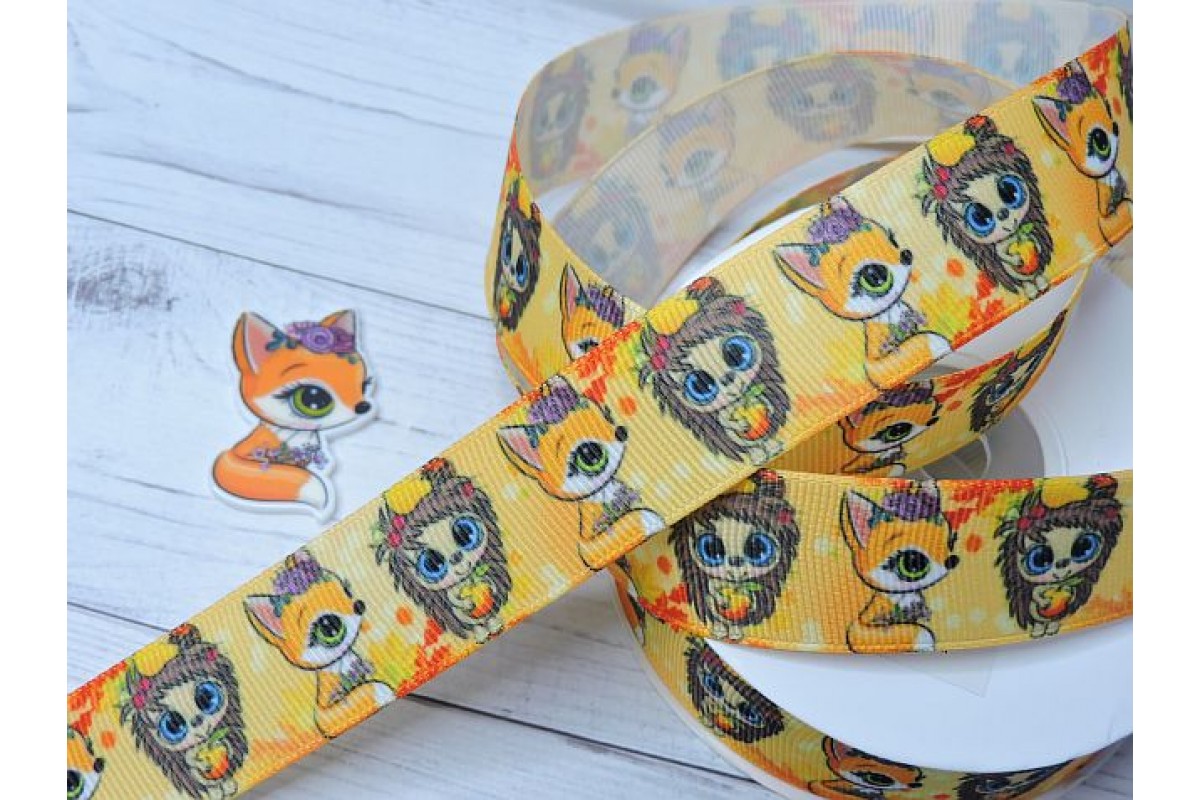 10041, Лента репсовая 25 мм с рисунком "Лисичка и ежик" - 1м., , 1.16BYN, 126-369 нов, Китай, 25 мм
