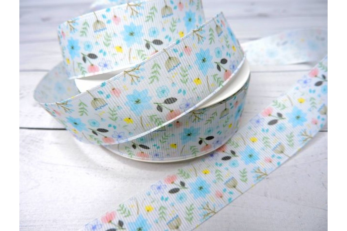 Лента репсовая 25 мм с рисунком "Полевые цветочки"" - 1 м., 126-680нов, Китай, 25 мм