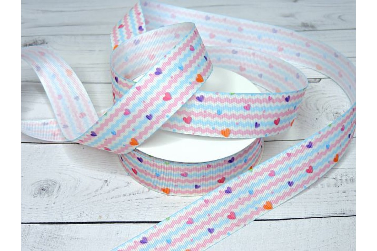 Лента репсовая 25 мм с рисунком "Сердечки №2" - 1 м., 126-678нов, Китай, 25 мм