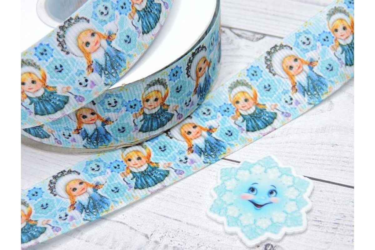 Лента репсовая 25 мм с рисунком" Снегурочка №2" - 1 м.