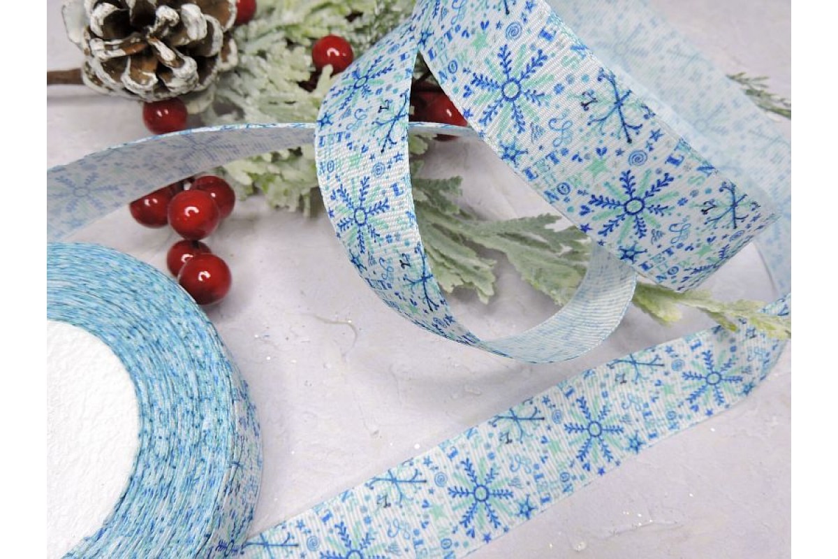 Лента репсовая 25 мм с рисунком "Снежинки" - 1 м.