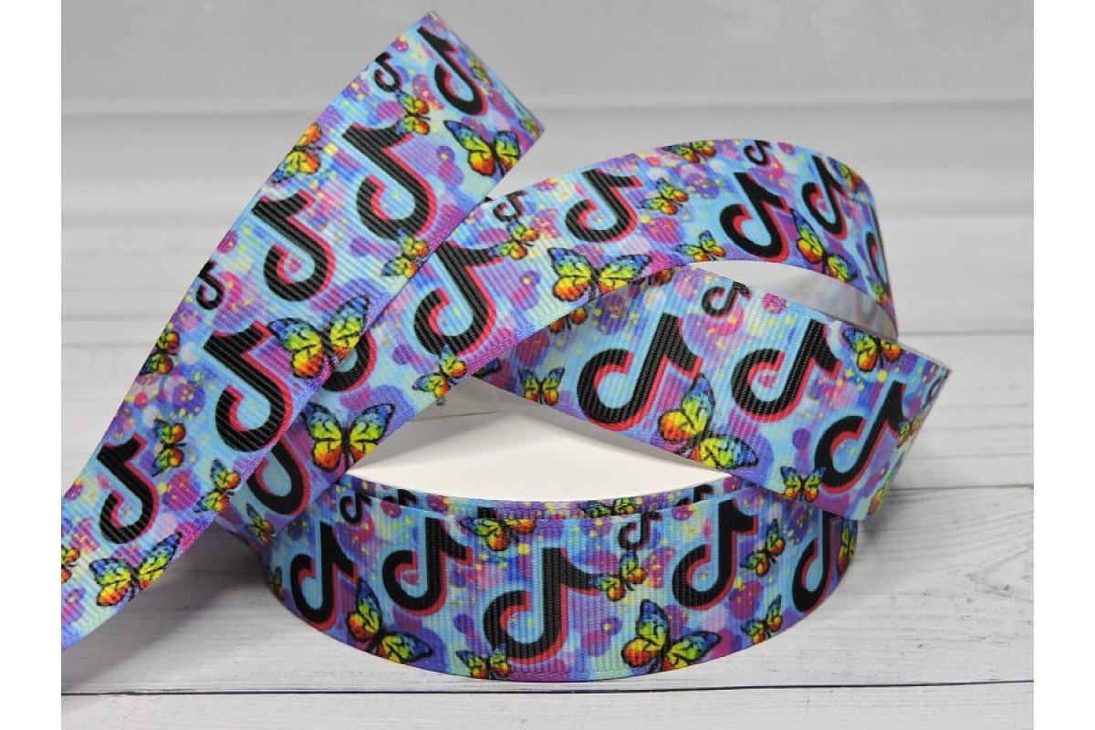 Лента репсовая 25 мм с рисунком "TikTok" - 1 м.