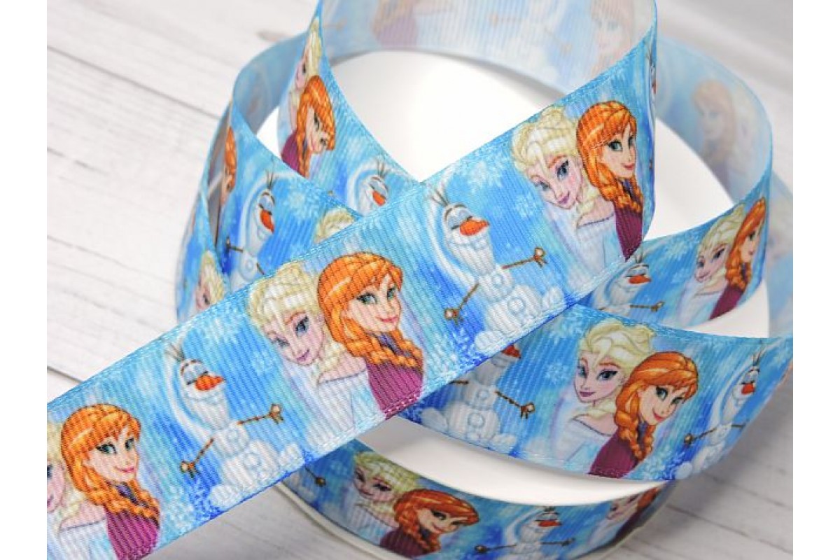 Лента репсовая 25 мм с рисунком "Холодное сердце" - 1м.