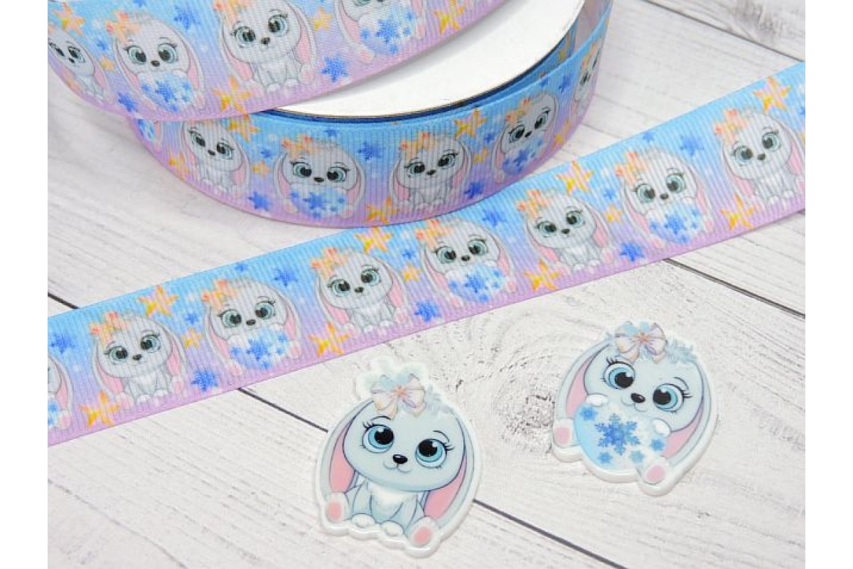 Лента репсовая 25 мм с рисунком" Зайчик №1" - 1 м.
