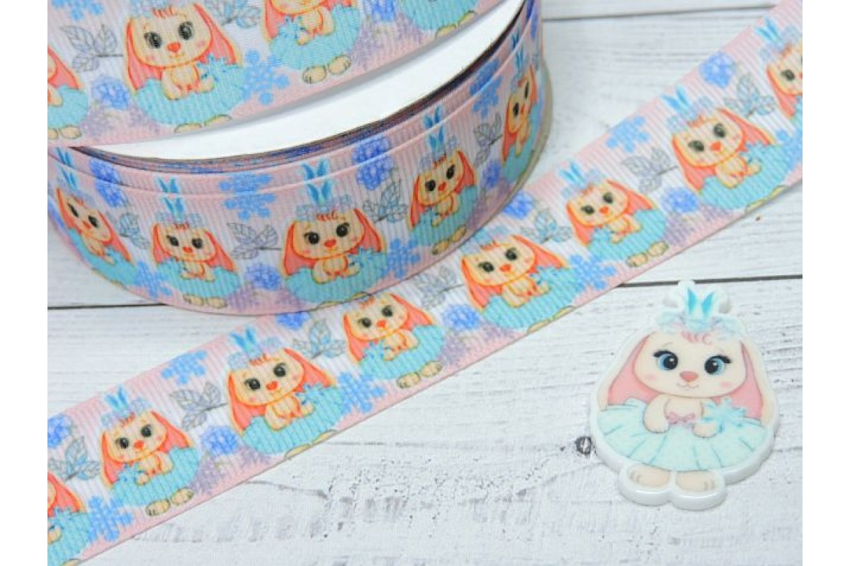 Лента репсовая 25 мм с рисунком" Зайчик №2" - 1 м.