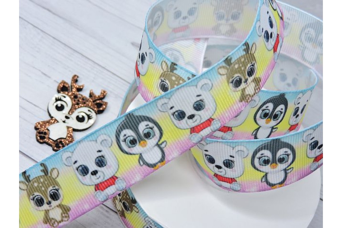 Лента репсовая 25 мм с рисунком "Зверята" - 1м.