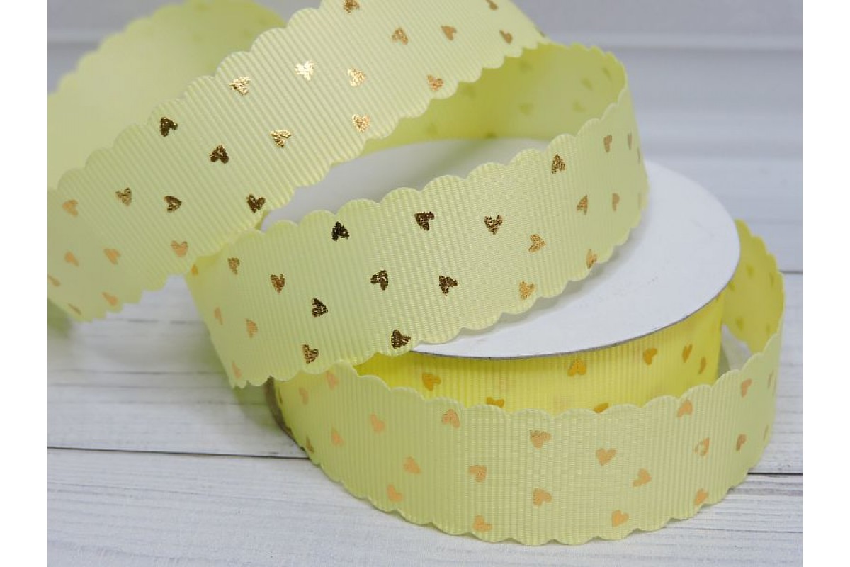 Лента репсовая с фигурным краем 22 мм "Сердечки", цв. светло-желтый - 1 м.