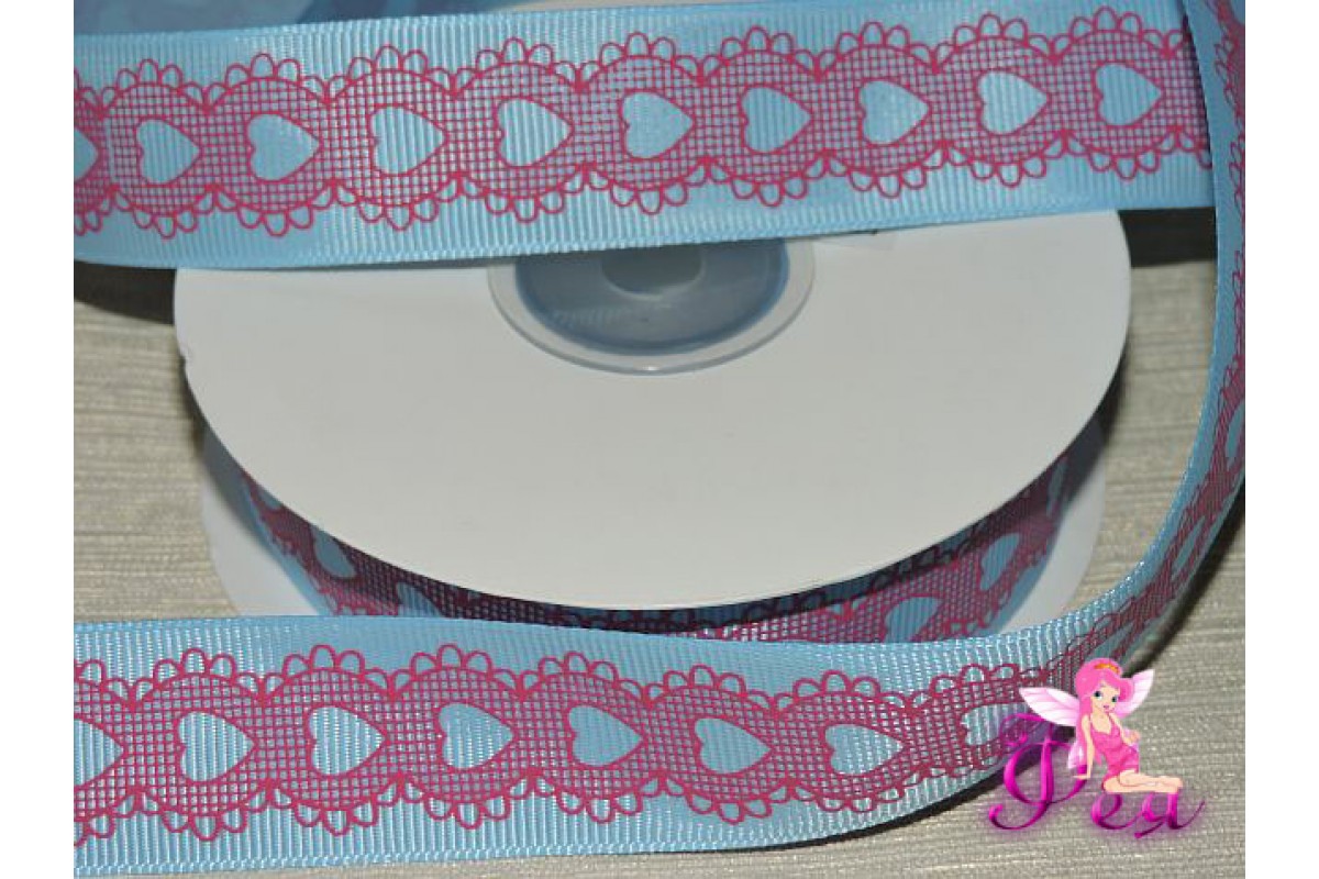 Лента репсовая 25 мм с рисункам "Кружево", цв. голубой