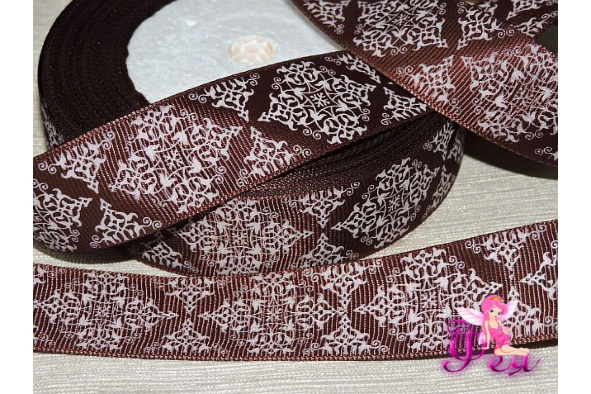Лента репсовая 25 мм с рисункам "Узор", цв. коричневый