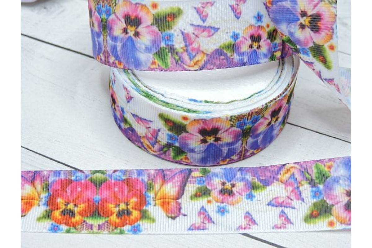 Лента репсовая 25 мм с рисунком "Анютины глазки"