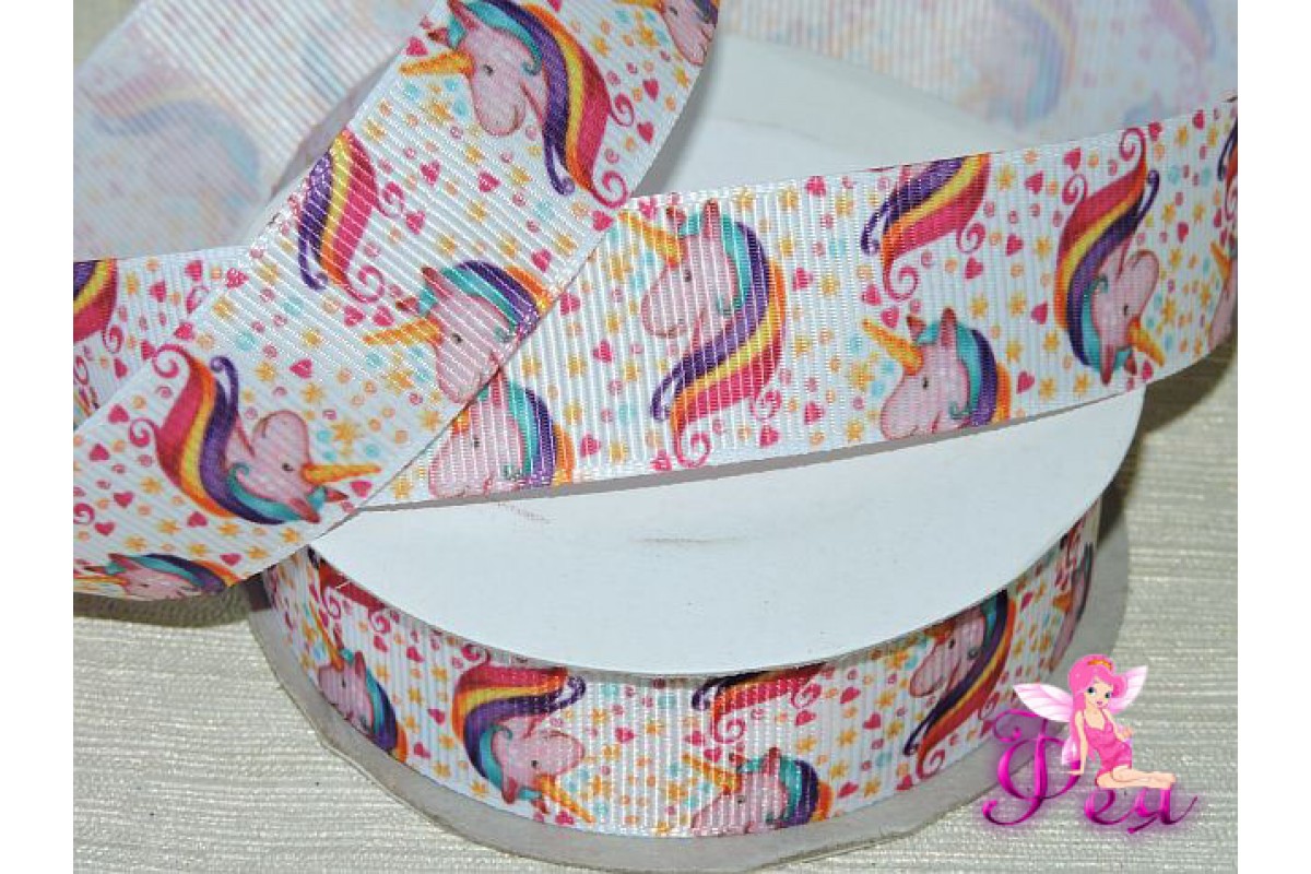 Лента репсовая 25 мм с рисунком "Единорог" - 1м