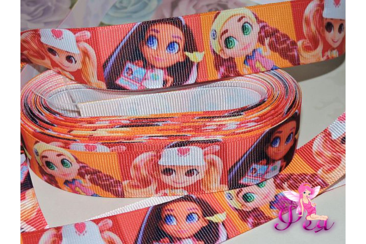 Лента репсовая 25 мм с рисунком «Hairdorables» (Хэрдораблс) № 3 - 1м
