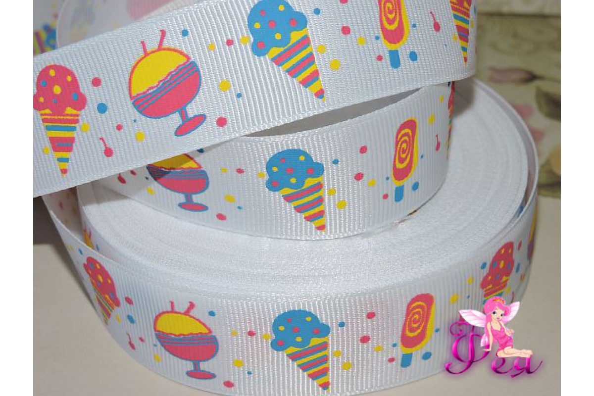 Лента репсовая 25 мм с рисунком "Мороженое" - 1м, 3019927, Китай, 25 мм