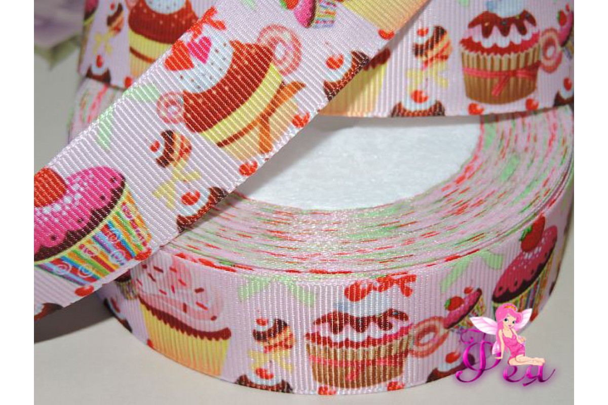 Лента репсовая 25 мм с рисунком "Пироженки", цв. розовый - 1м